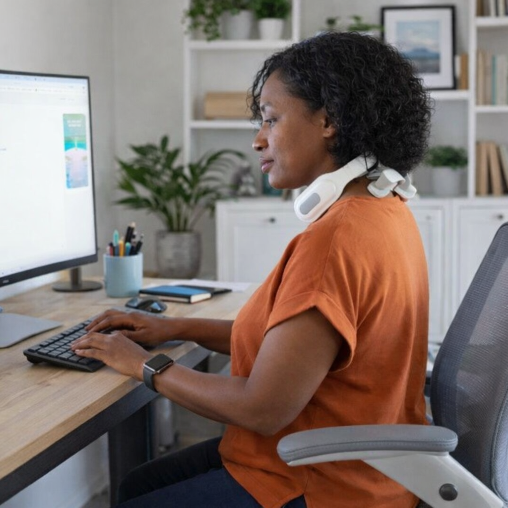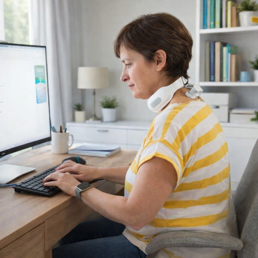 ✔ Reduces stiffness, “tech neck,” and muscle strain from daily posture stress