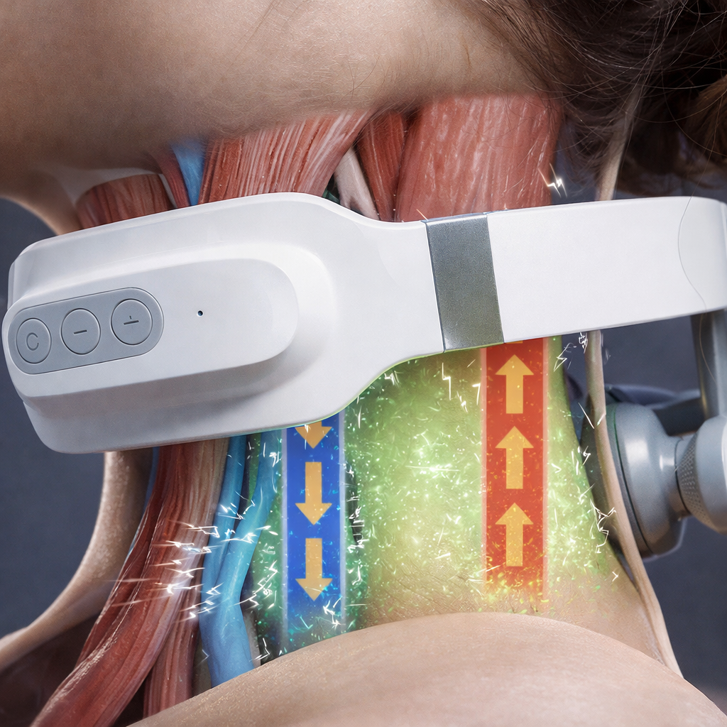 Reliva Pro’s Electrical Muscle Stimulation (EMS) 2.0 delivers gentle, targeted pulses that engage the deep neck stabilizer muscles — often weakened by poor posture, cervical strain, or long hours at a desk.